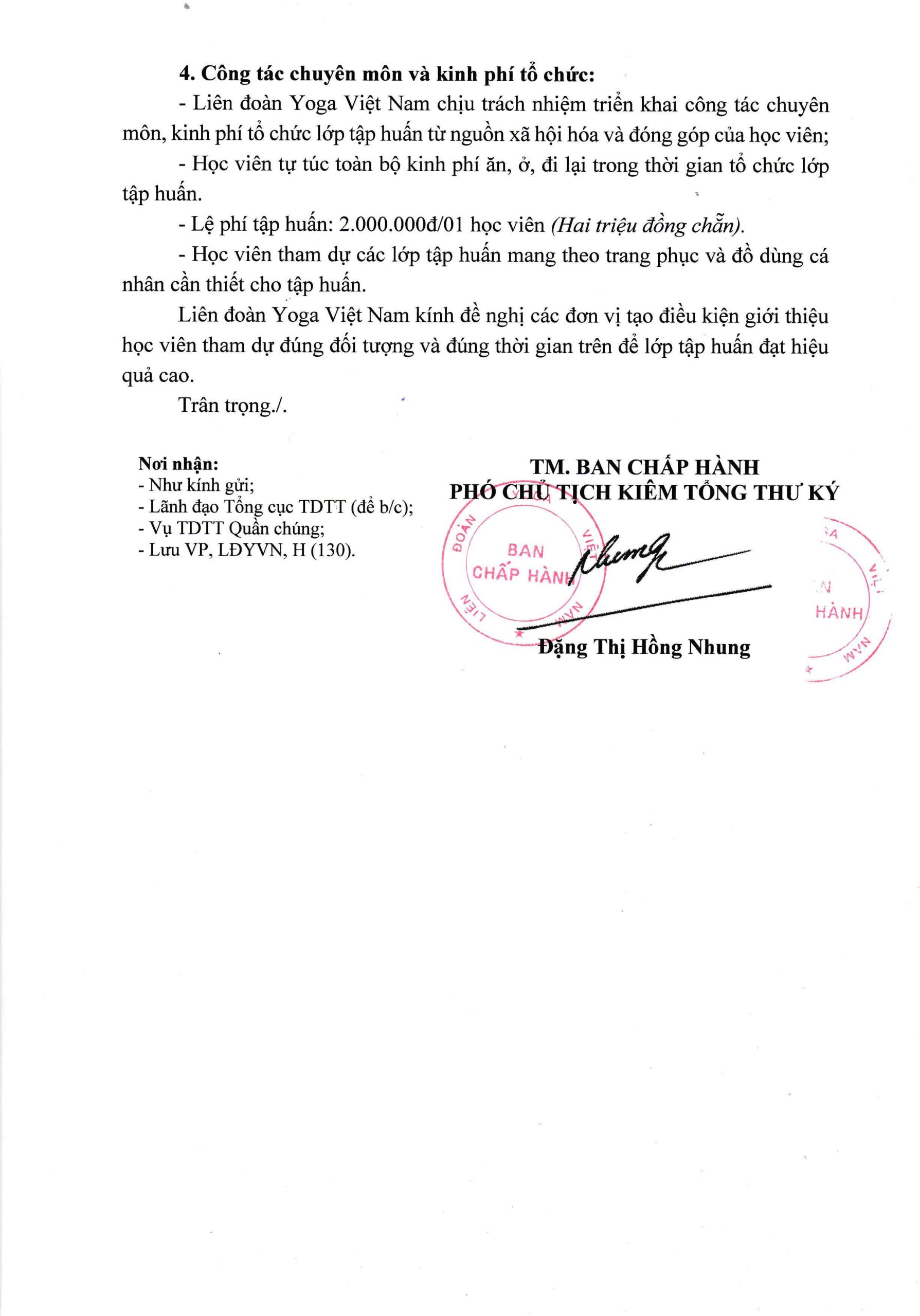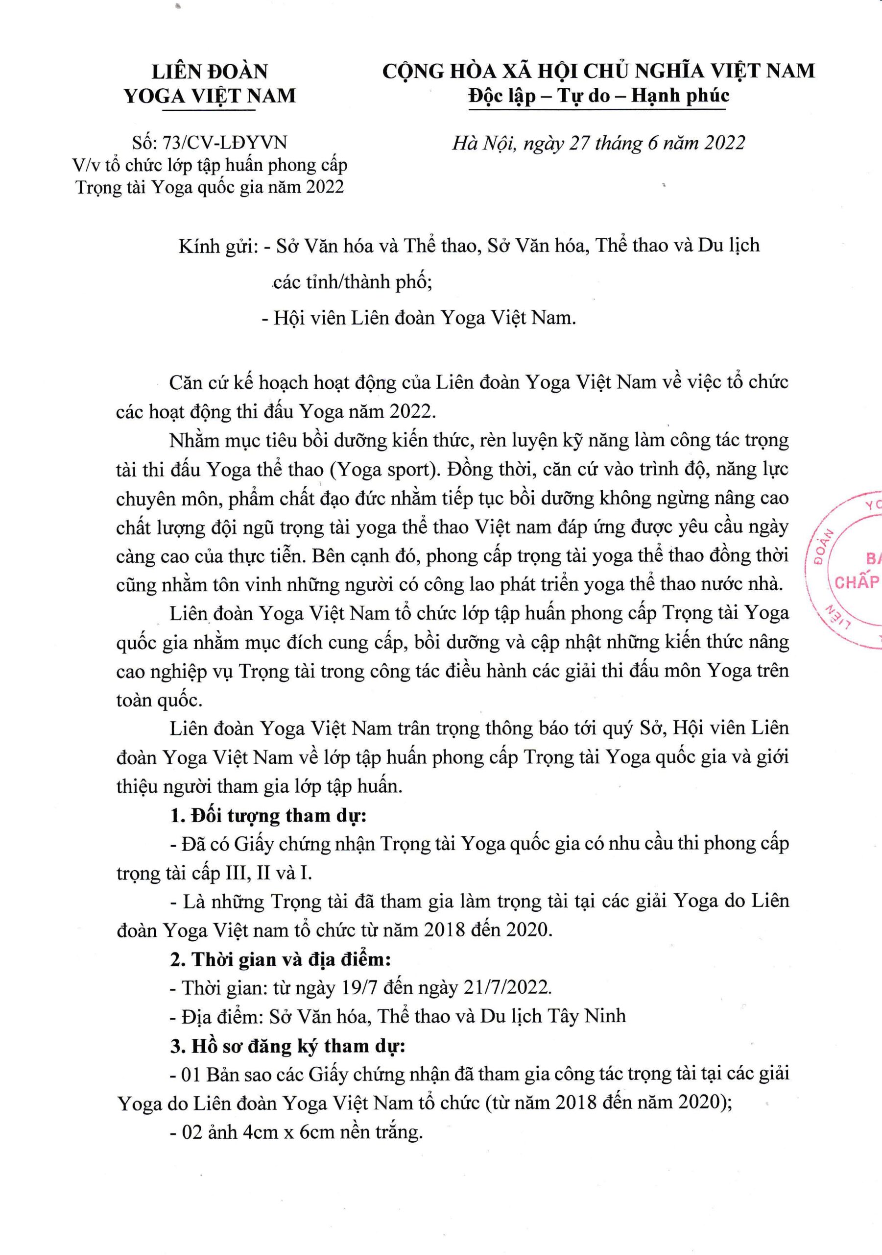 - Công văn tổ chức lớp đào tạo và lớp tập huấn phong cấp trọng tài Yoga quốc gia năm 2024 tại Đà Nẵng