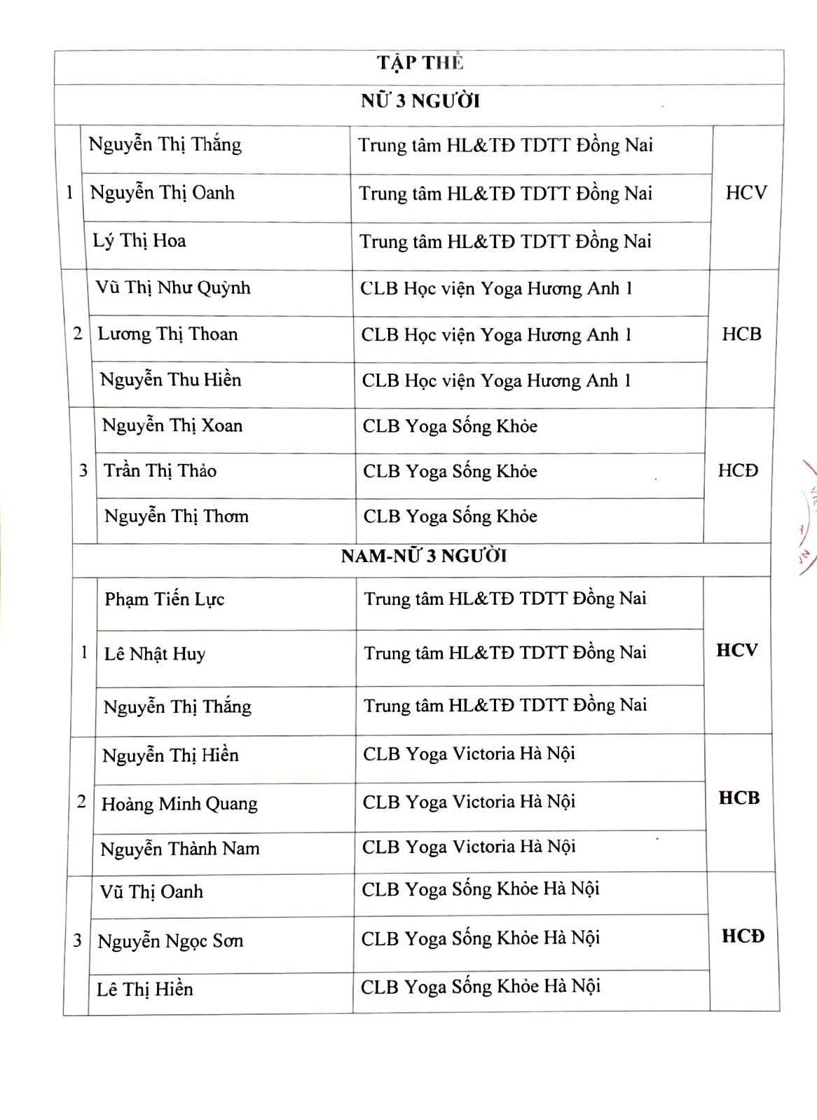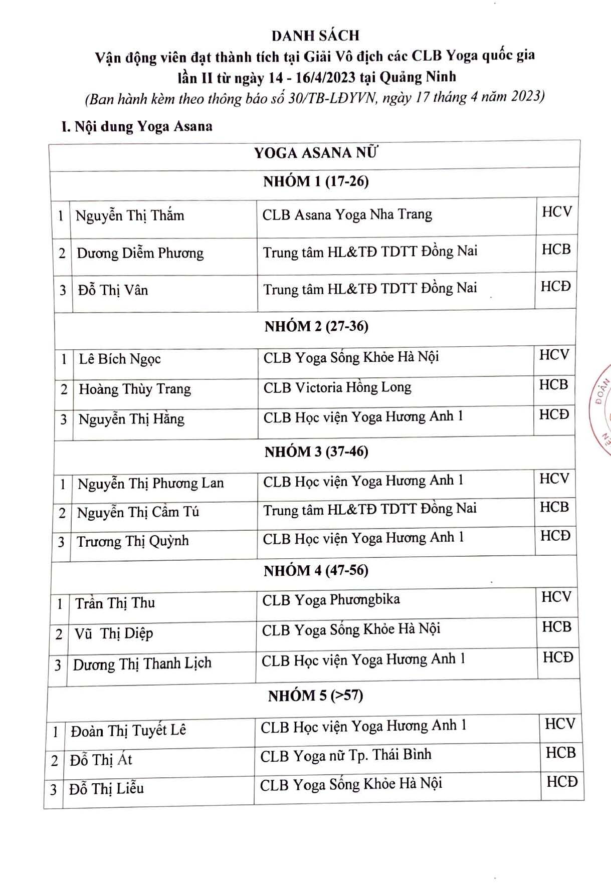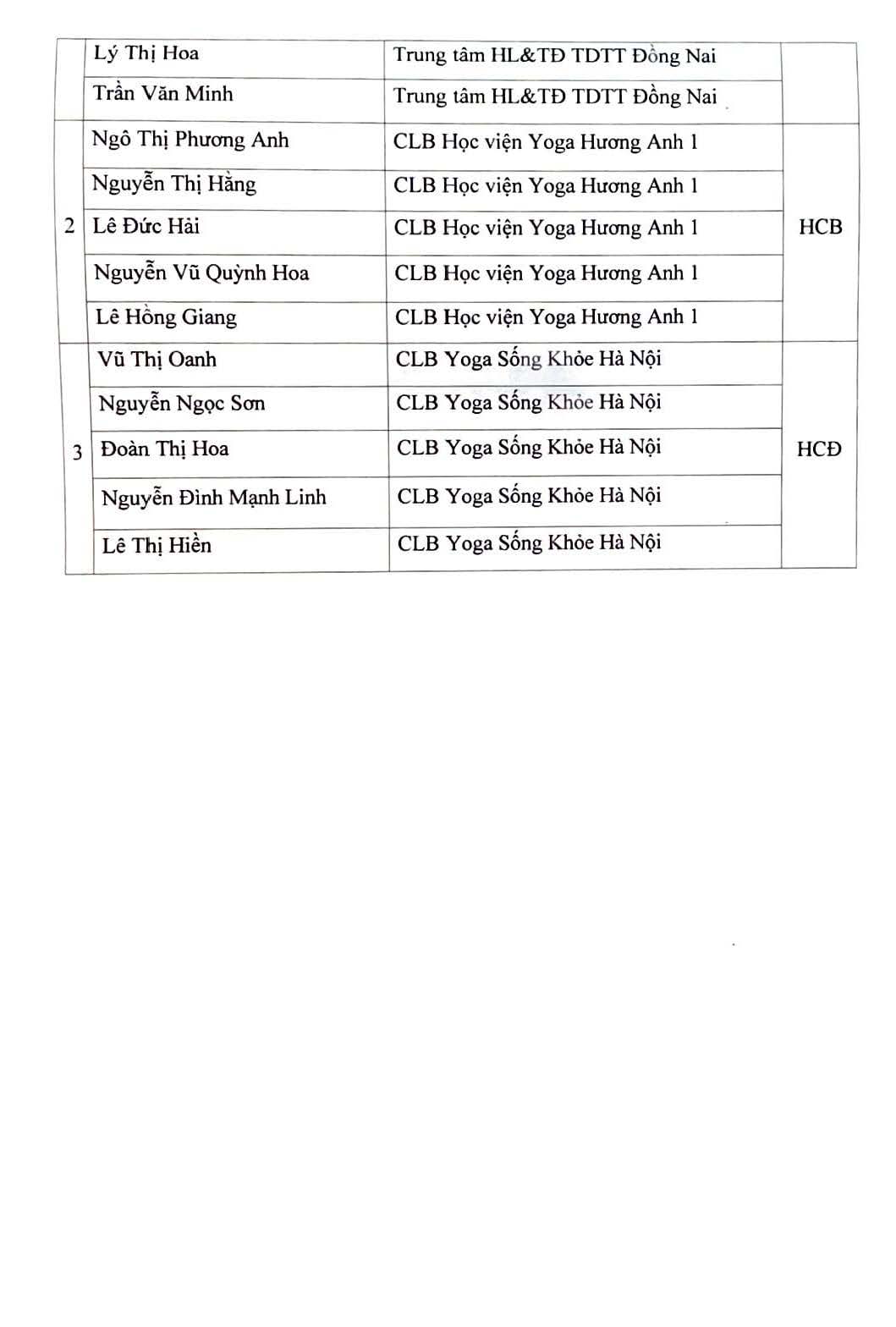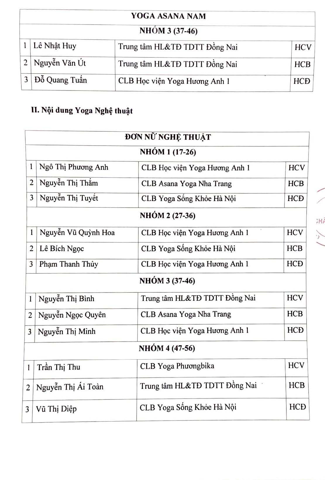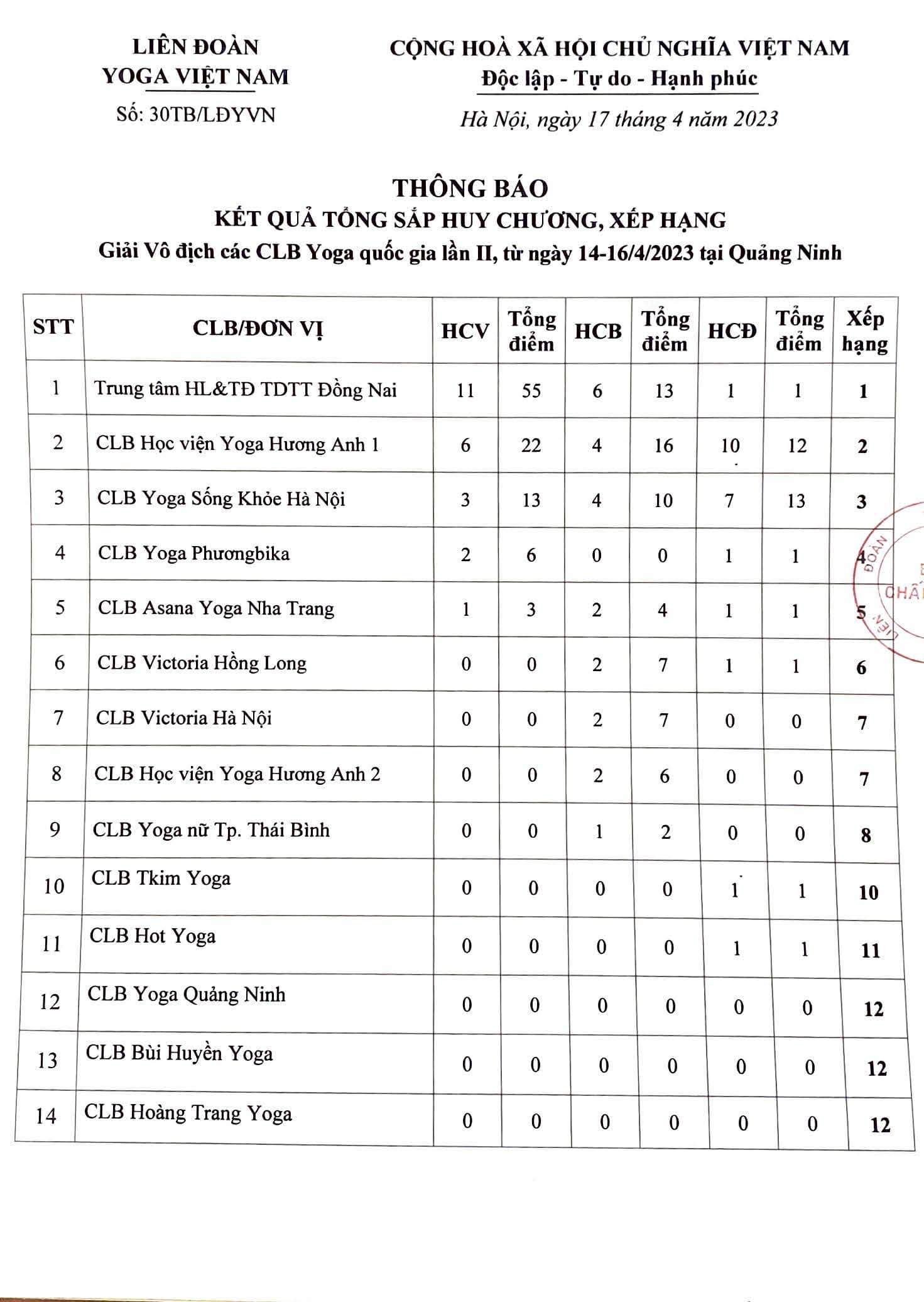 - Thông báo kết quả tổng sắp huy chương, xếp hạng Giải Vô địch các CLB Yoga quốc gia lần I, từ ngày 09-12/6/2022 tại Thanh Hóa